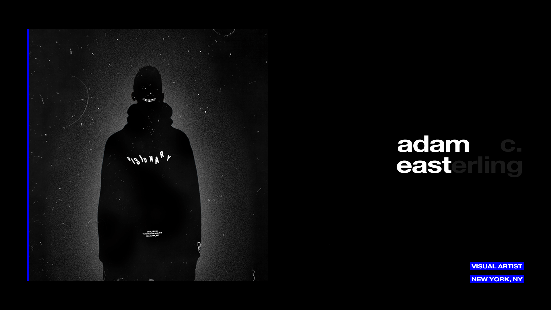 Adam C Easterling 28, Brooklyn. NY Freelance Creative (Design, Motion Graphics, Illustration, Photography, Creative Direction) Worked with: Complex, The Fader, Shady Records, 300 Entertainment, Adidas, September Management, Green Label, Soundcloud, Alamo Records, Selah Marley, etc.